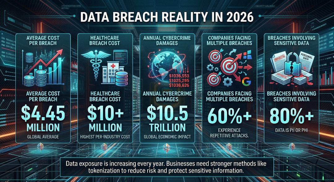 Data breaches now occur at a steady pace across industries. Recent reports show that the average cost of a breach stands at around $4.45 million per incident. In sectors like healthcare, this figure often crosses $10 million. At the same time, global cybercrime damages are expected to reach $10.5 trillion annually by 2026.